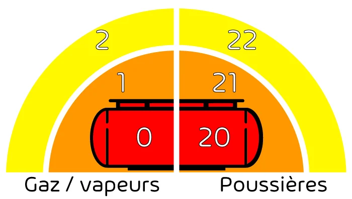 Une zone ATEX est un environnement où il existe un risque d’explosion dû à la présence de gaz/vapeurs inflammables ou poussières combustibles.